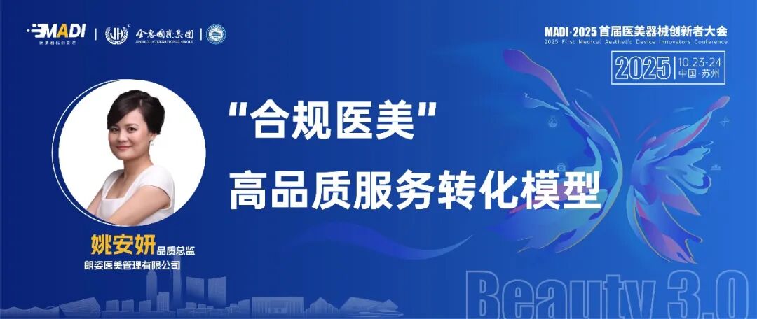 本次大会我们特别邀请到朗姿医美管理有限公司品质总监-姚安妍老师,她将与大家共同分享“合规医美”高品质服务转化模型这一话题。
